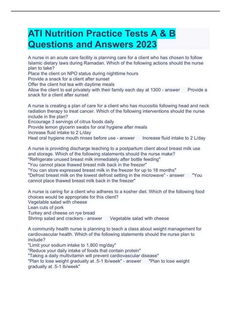 Read Online ATI NUTRITION PRACTICE QUESTIONS Ebook Reader online is a convenient and frugal way to read ATI NUTRITION PRACTICE QUESTIONS Ebook you love right from the comfort of your own home. Yes, there sites where you can get Reader "for free" but the ones listed below are clean from viruses and completely legal to use.