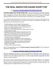Read Online The Real Inspector Hound Script Pdf Free Doc By Click Button. The Real Inspector Hound Script Pdf Free it’s easy to recommend a new book category such as Novel, journal, comic, magazin, ect. You see it and you just know that the designer is also an author and understands the challenges involved with having a good book. You can easy klick for detailing book and you can read it online, even you can download it