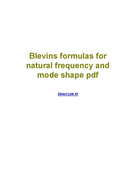 Download BLEVINS NATURAL FREQUENCY AND MODE SHAPES Ebook PDF online is a convenient and frugal way to read BLEVINS NATURAL FREQUENCY AND MODE SHAPES Ebook you love right from the comfort of your own home. Yes, there sites where you can get PDF "for free" but the ones listed below are clean from viruses and completely legal to use.
